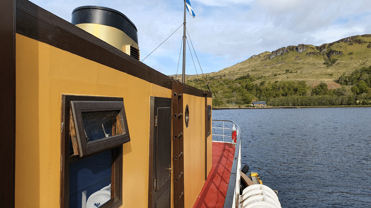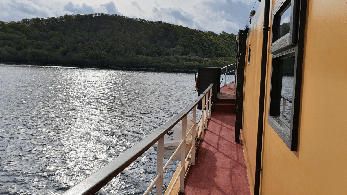 We woke up this morning before 7.00am (early for a Sunday morning!) after an excellent night’s sleep, aided by the fact that the engines and generator on the Glen Tarsan are closed down overnight, to ensure a lovely quiet evening in calm, sheltered waters. (If you need to charge your phone or laptop, do it during the day as there won’t be any ‘leccy’ overnight). 😊